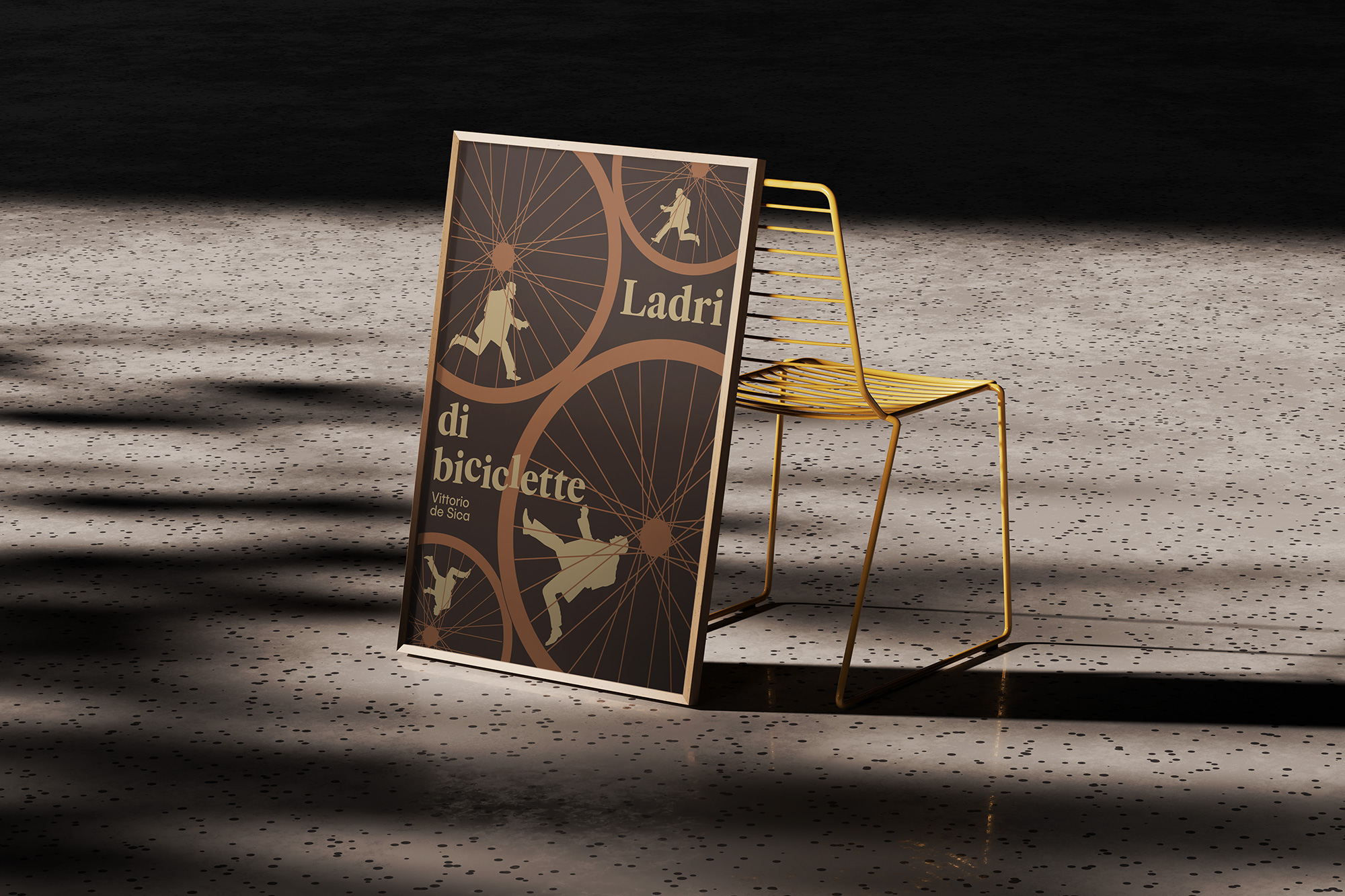 Croatian graphic designer Andrea Listeš’ interpretation of Ladri di biciclette (1948) transforms De Sica’s neorealist masterpiece into a minimalist visual composition full of motion and tension. With stylized silhouettes and rhythmic wheels, the design captures both the urgency and emotional gravity of a postwar story about survival, dignity, and loss.